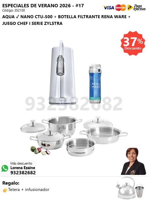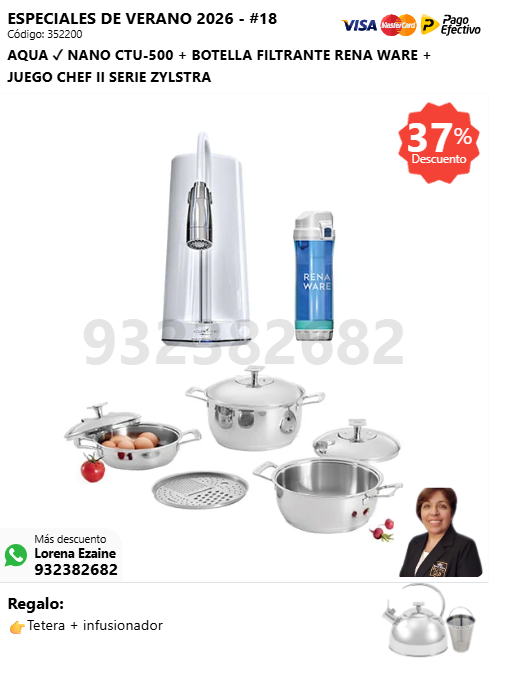AQUA ✓ NANO CTU-500 + BOTELLA FILTRANTE RENA WARE + JUEGO CHEF I SERIE ZYLSTRA + (🎁: Tetera + infusionador )