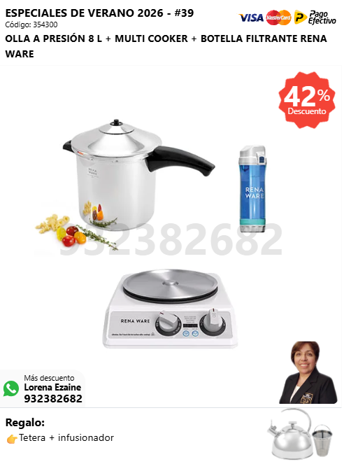 OLLA A PRESIÓN 8 L + MULTI COOKER + BOTELLA FILTRANTE RENA WARE + (🎁: Tetera + infusionador )