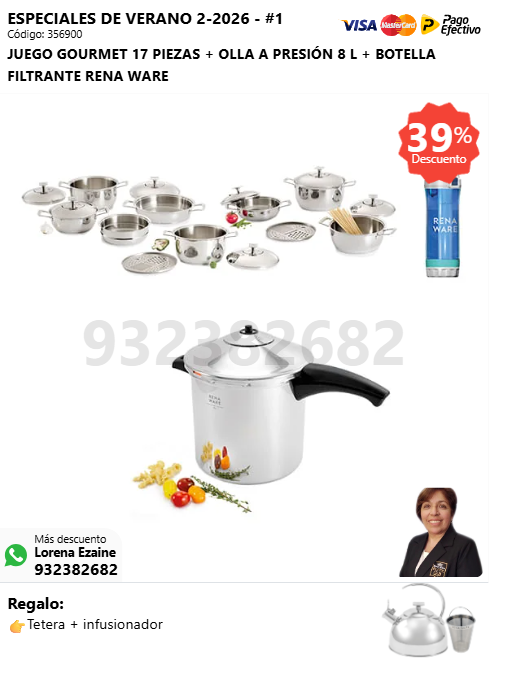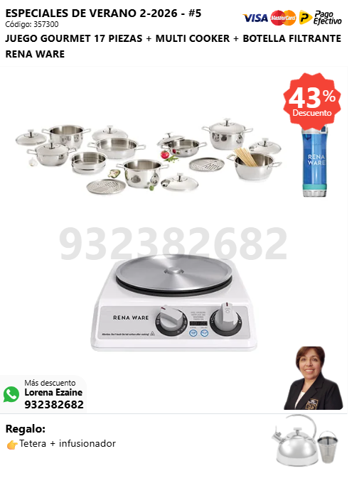 JUEGO GOURMET 17 PIEZAS + MULTI COOKER + BOTELLA FILTRANTE RENA WARE + (🎁: Tetera + infusor )