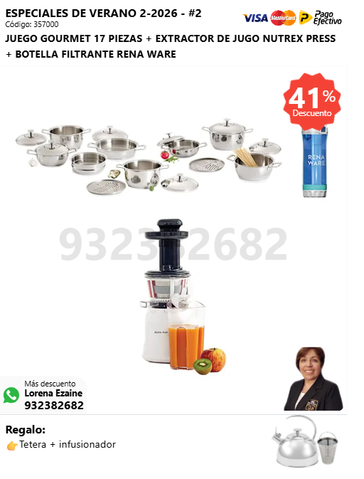 JUEGO GOURMET 17 PIEZAS + EXTRACTOR DE JUGO NUTREX PRESS + BOTELLA FILTRANTE RENA WARE + (🎁: Tetera + infusor )