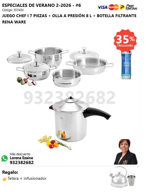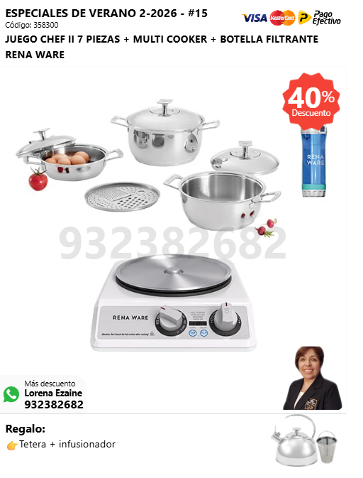 JUEGO CHEF I 7 PIEZAS + MULTI COOKER + BOTELLA FILTRANTE RENA WARE + (🎁: Tetera + infusor )