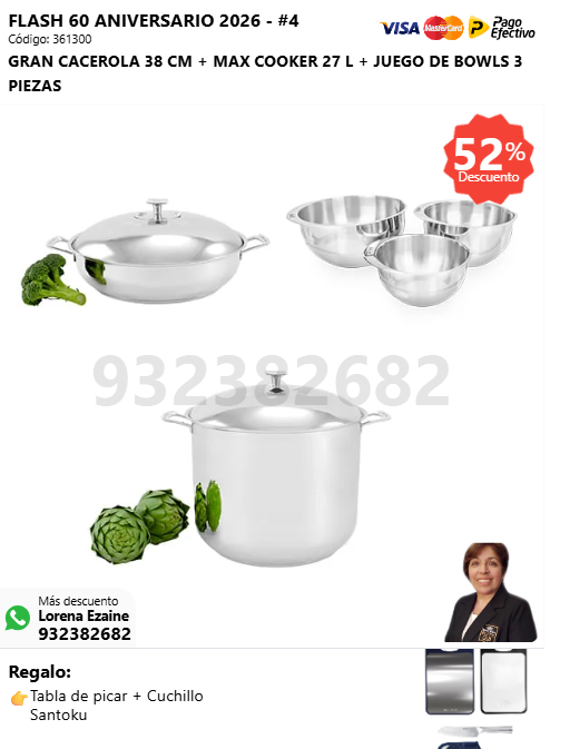 GRAN CACEROLA 38 CM + MAX COOKER 27 L + JUEGO DE BOWLS 3 PIEZAS + (🎁: Tabla de picar + Cuchillo Santoku )