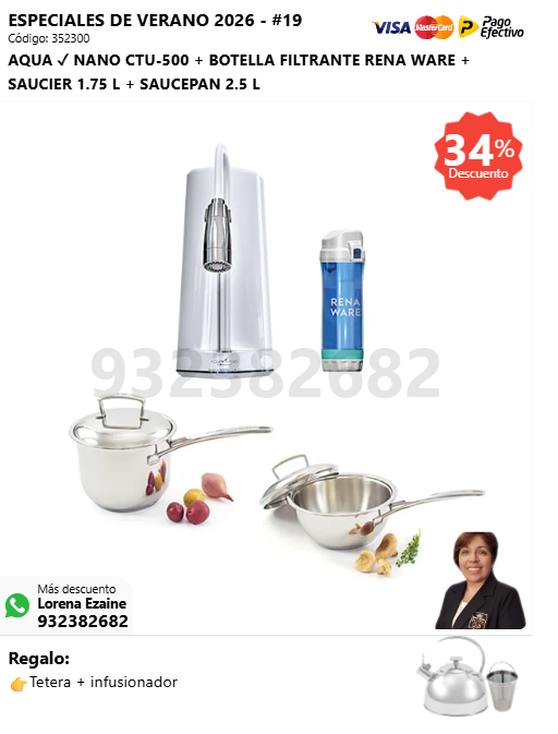 AQUA ✓ NANO CTU-500 + BOTELLA FILTRANTE RENA WARE + SAUCIER 1.75 L + SAUCEPAN 2.5 L + (🎁: Tetera + infusionador )