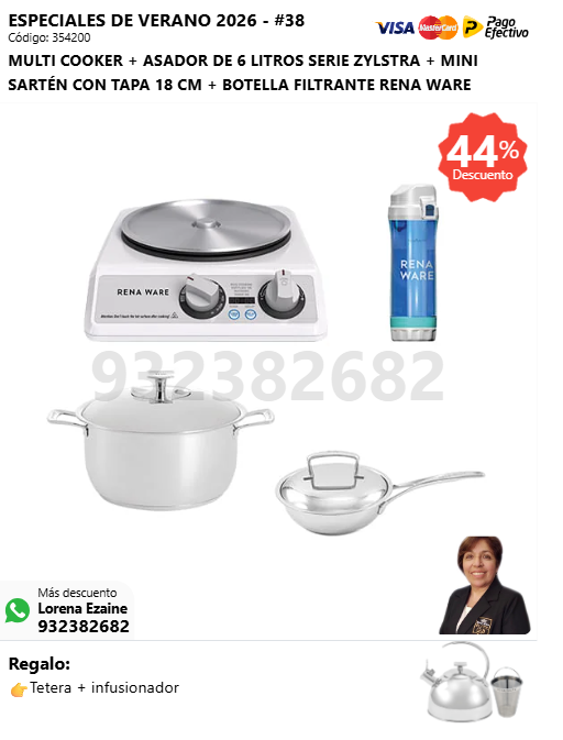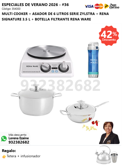MULTI COOKER + ASADOR DE 6 LITROS SERIE ZYLSTRA + RENA SIGNATURE 3.5 L + BOTELLA FILTRANTE RENA WARE + (🎁: Tetera + infusionador )