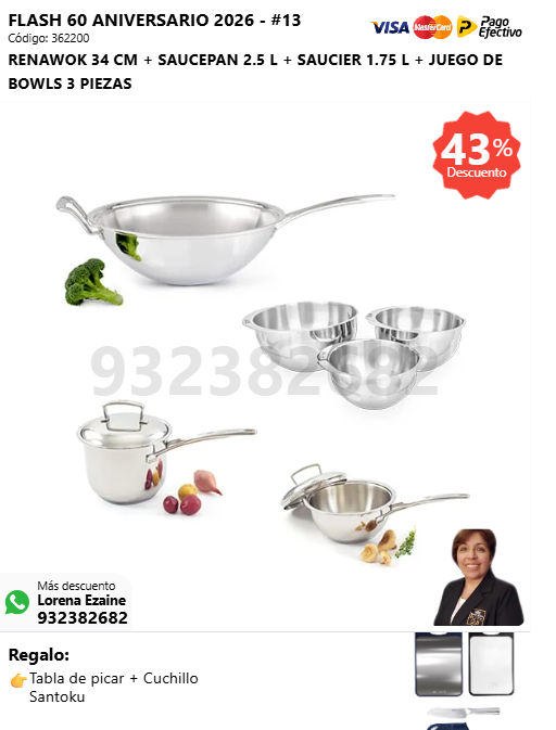 RENAWOK 34 CM + SAUCEPAN 2.5 L + SAUCIER 1.75 L + JUEGO DE BOWLS 3 PIEZAS + (🎁: Tabla de picar + Cuchillo Santoku )