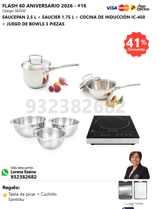 SAUCEPAN 2.5 L + SAUCIER 1.75 L + COCINA DE INDUCCIÓN IC-450 + JUEGO DE BOWLS 3 PIEZAS + (🎁: Tabla de picar + Cuchillo Santoku )